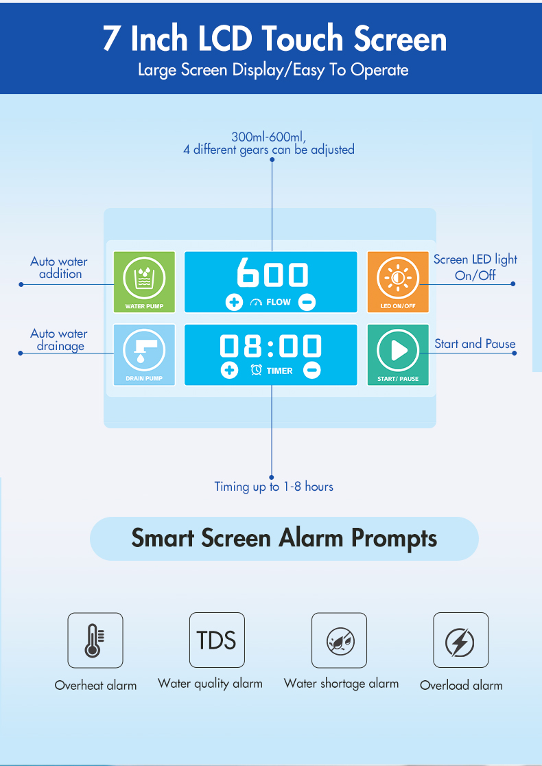Smart Screen Alarm Prompts:overheat alarm,water quality alarm,water shortage alarm,overload alarm