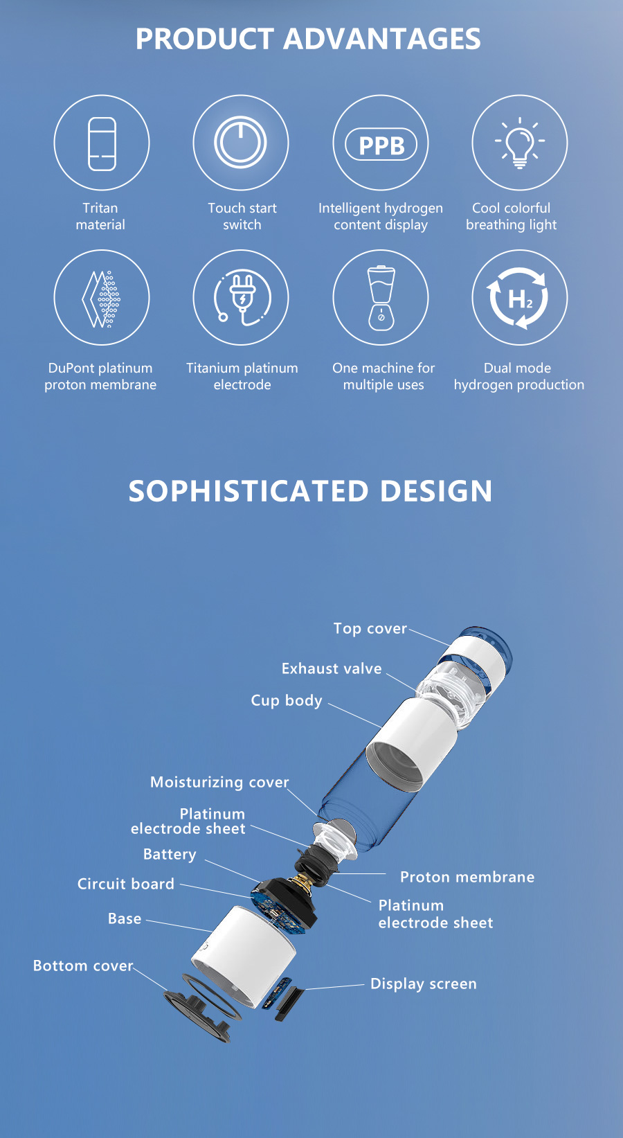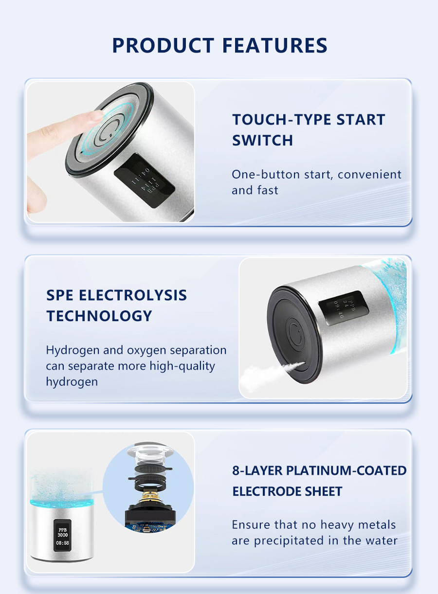 5. Lithium polymer battery (can continuously produce 20-30 cups of hydrogen water in 5-minute mode).